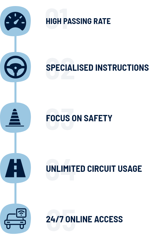 Our courses are crafted to ensure you not only pass your driving test but become a confident and responsible driver on the road.